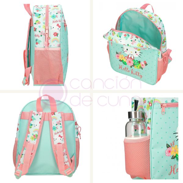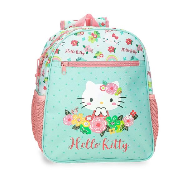 Mochila Guardería Hello Kitty Floral: estilo, ternura y comodidad para peques con espíritu alegre. La mochila Hello Kitty adaptable a carro de la colección Floral Kitty es ideal para acompañar a los peques en sus días de cole, actividades o escapadas. Inspirada en la frescura de la naturaleza, esta mochila combina un suave fondo verde con un encantador estampado floral, y la dulzura inconfundible de Hello Kitty en el centro.