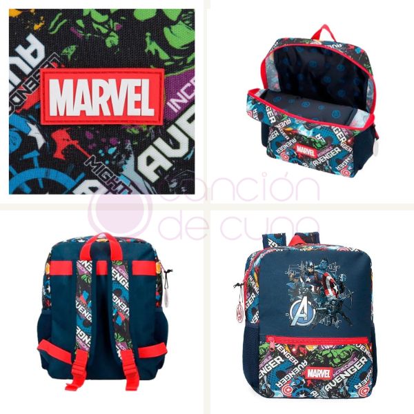 Gracias a su banda trasera y sistema Magic Fix, se puede acoplar fácilmente a un carrito escolar para mayor comodidad. Su diseño está protagonizado por los legendarios Vengadores en un estampado vibrante que invita a soñar con grandes hazañas.