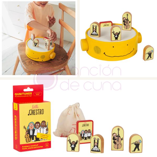 Qubitunes Little Maestro es un juego musical infantil pensado para que los peques creen música, sonidos y melodías de forma libre y divertida, sin necesidad de pantallas. Incluye bloques físicos («qubits») que activan distintos instrumentos y melodías al colocarlos sobre la superficie.